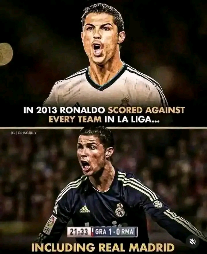In 2013, Cristiano Ronaldo scored against every team he faced in La Liga including his own team Real Madrid when he scored an own goal.