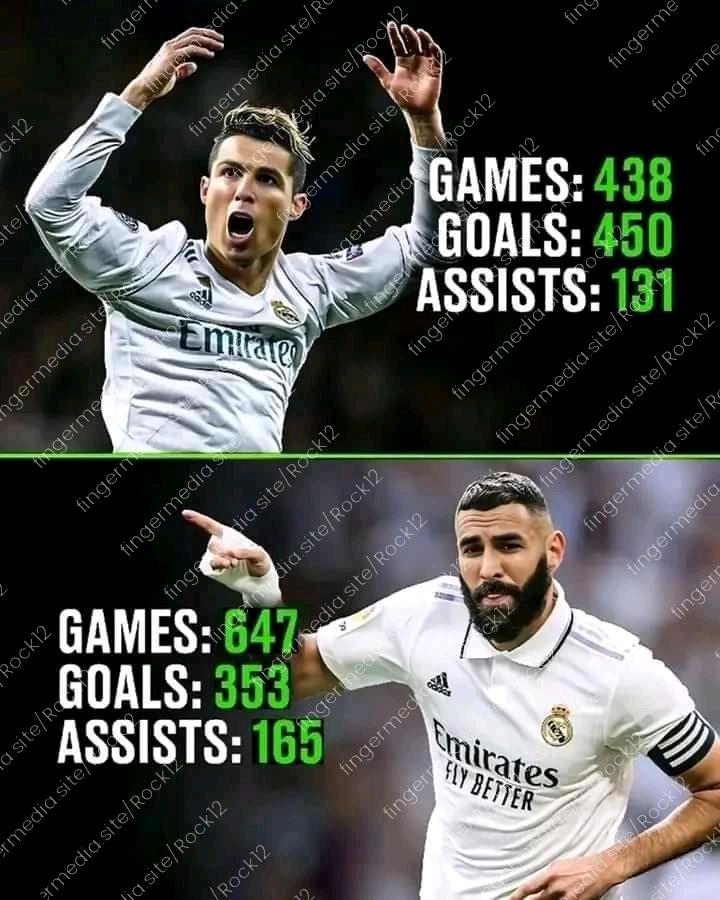 • Most goals in Real Madrid history: 1️⃣. Cristiano Ronaldo 2️⃣. Karim Benzema • Most assists in Real Madrid history: 1️⃣. Karim Benzema 2️⃣. Cristiano Ronaldo • 2009: Both signed in the same summer 🤝 • Truly legends of the game 🔥